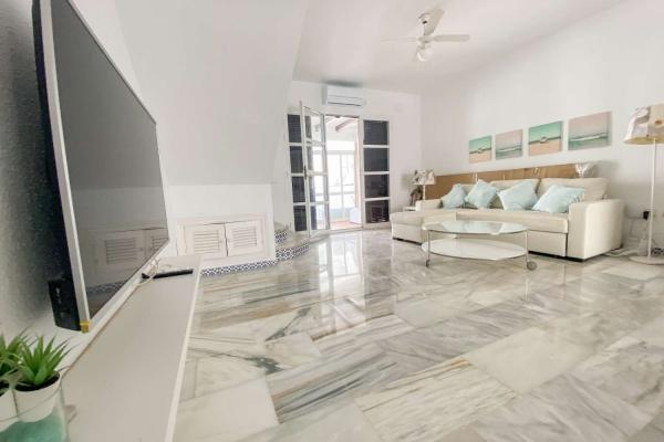 ¡Bienvenido al paraíso en la playa de Fuengirola! Este hermoso chalet recientemente reformado se encuentra en la prestigiosa urbanización de Pueblo Castillo, en una ubicación inmejorable. A tan solo 100 metros de la arena, este hogar te ofrece lo mejor del estilo de vida mediterráneo. Además, está ubicado muy cerca de los chiringuitos, donde podrás disfrutar de la gastronomía local, y a solo 7 minutos a pie del Centro Comercial Myramar.