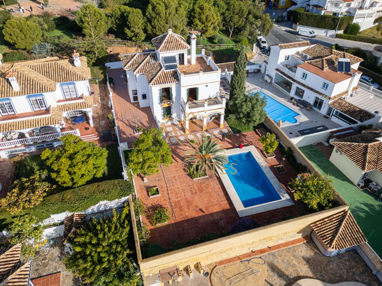Perinteiseen andalusialaiseen tyyliin rakennettu ja hyvässä kunnossa oleva huvila tarjoaa panoraamanäkymät sekä nopean ja helpon pääsyn pääteille ja kaikenlaisiin palveluihin.