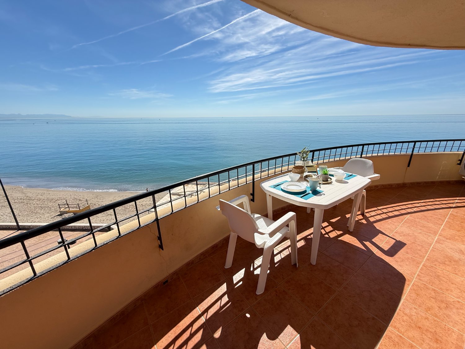 Geniet van onvergetelijke zonsondergangen vanaf uw eigen privéterras met toegang vanuit de tweede slaapkamer. De perfecte plek om te ontspannen of vrienden te vermaken.